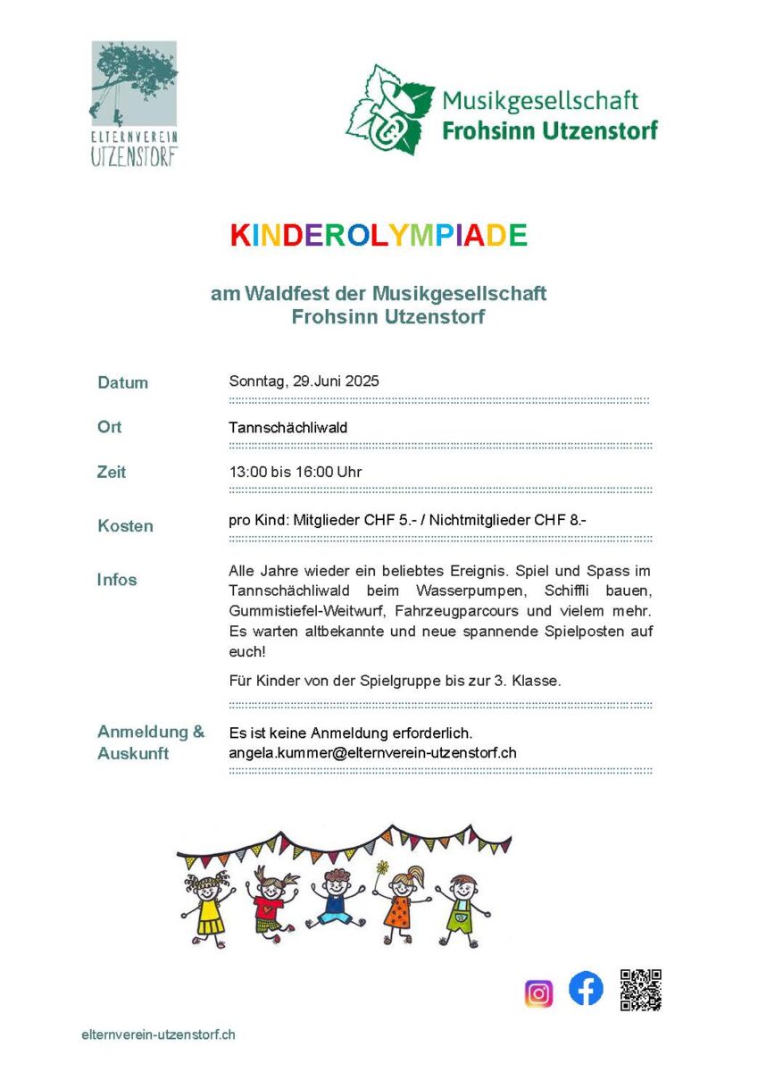 Kinderolympiade am Waldfest der Musikgesellschaft Frohsinn Utzenstorf